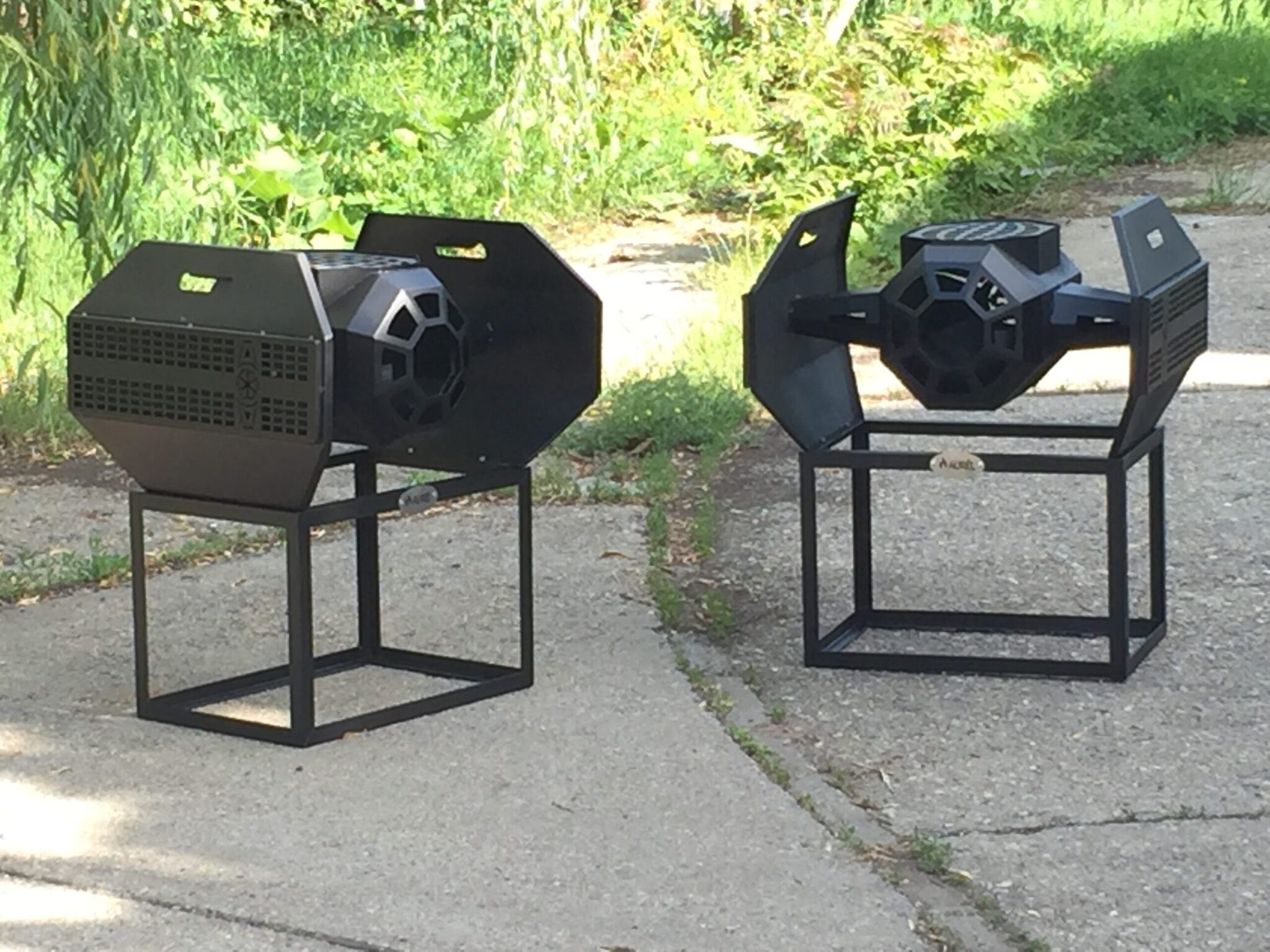 A kiváló alapanyagból készülő lézerrel vágott és CNC vezérelt hajlítással készülő kerti – terasz grill extravagáns megjelenésével bármilyen környezetben megállja a helyét. Sütő tárcsájának és rácsos részének kialakítása lehetővé teszi a grillezést , vaslapon sütést, nyárson sütést. Fa és faszén tüzelésre egyaránt alkalmas.